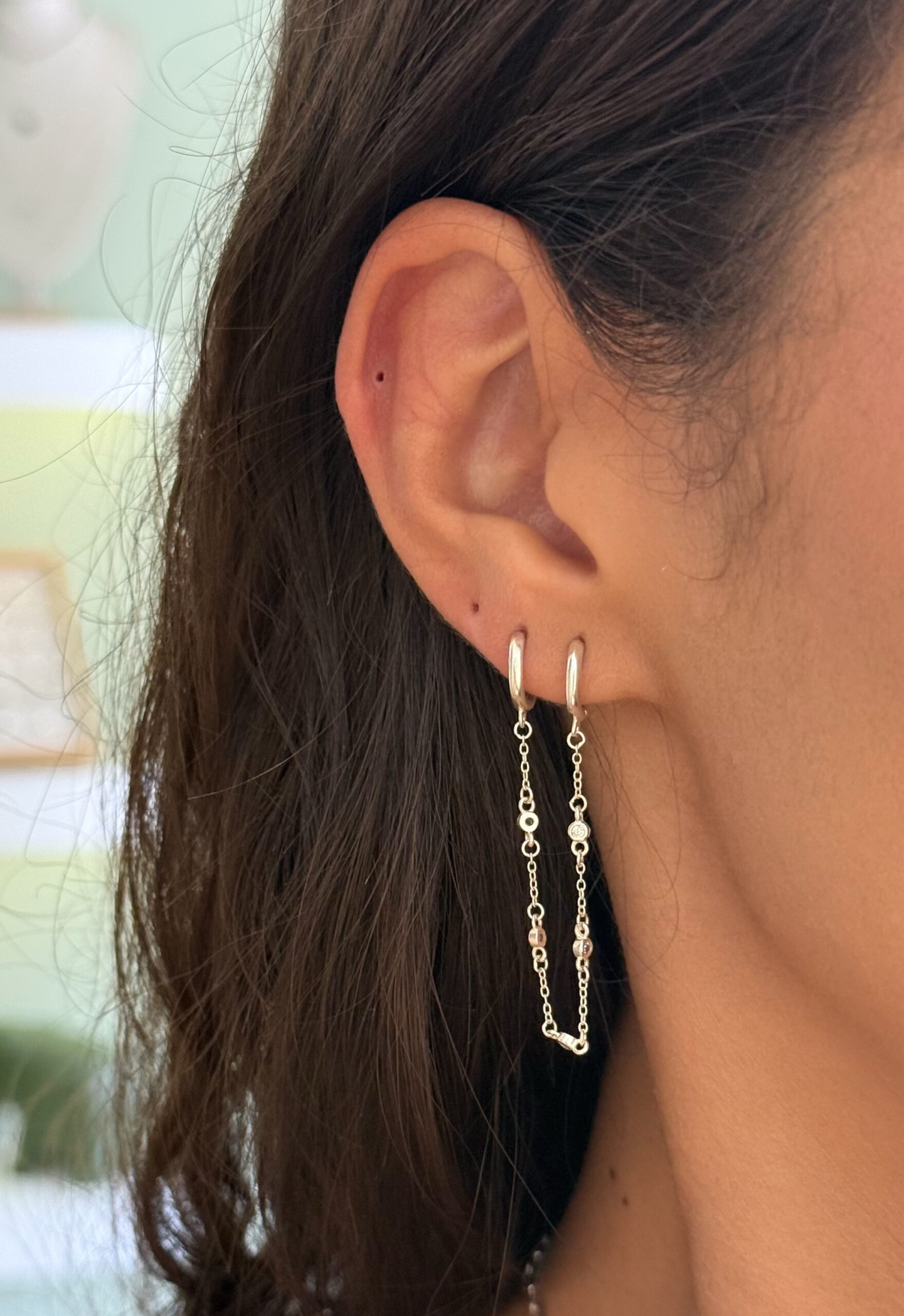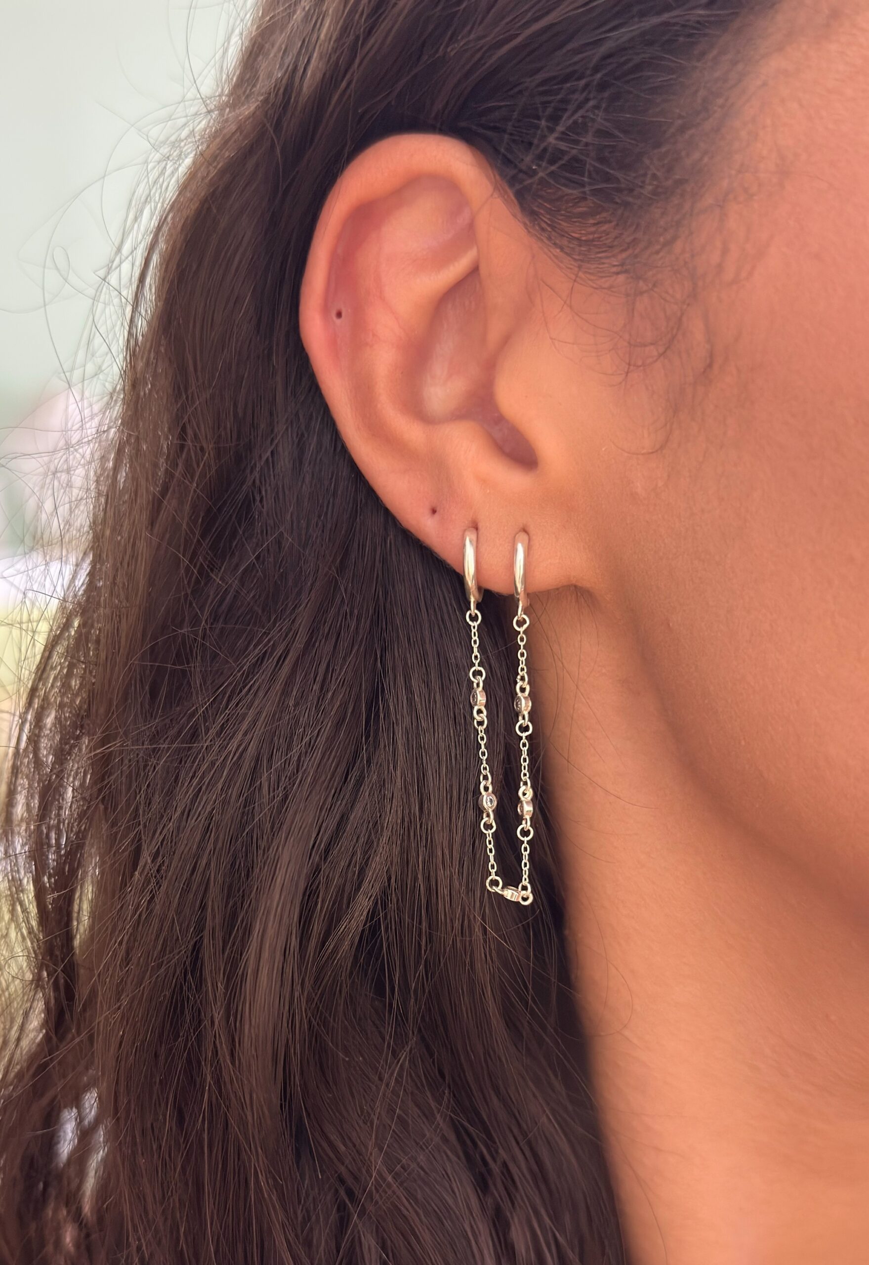 Argola dupla com corrente com zircônias na corrente.