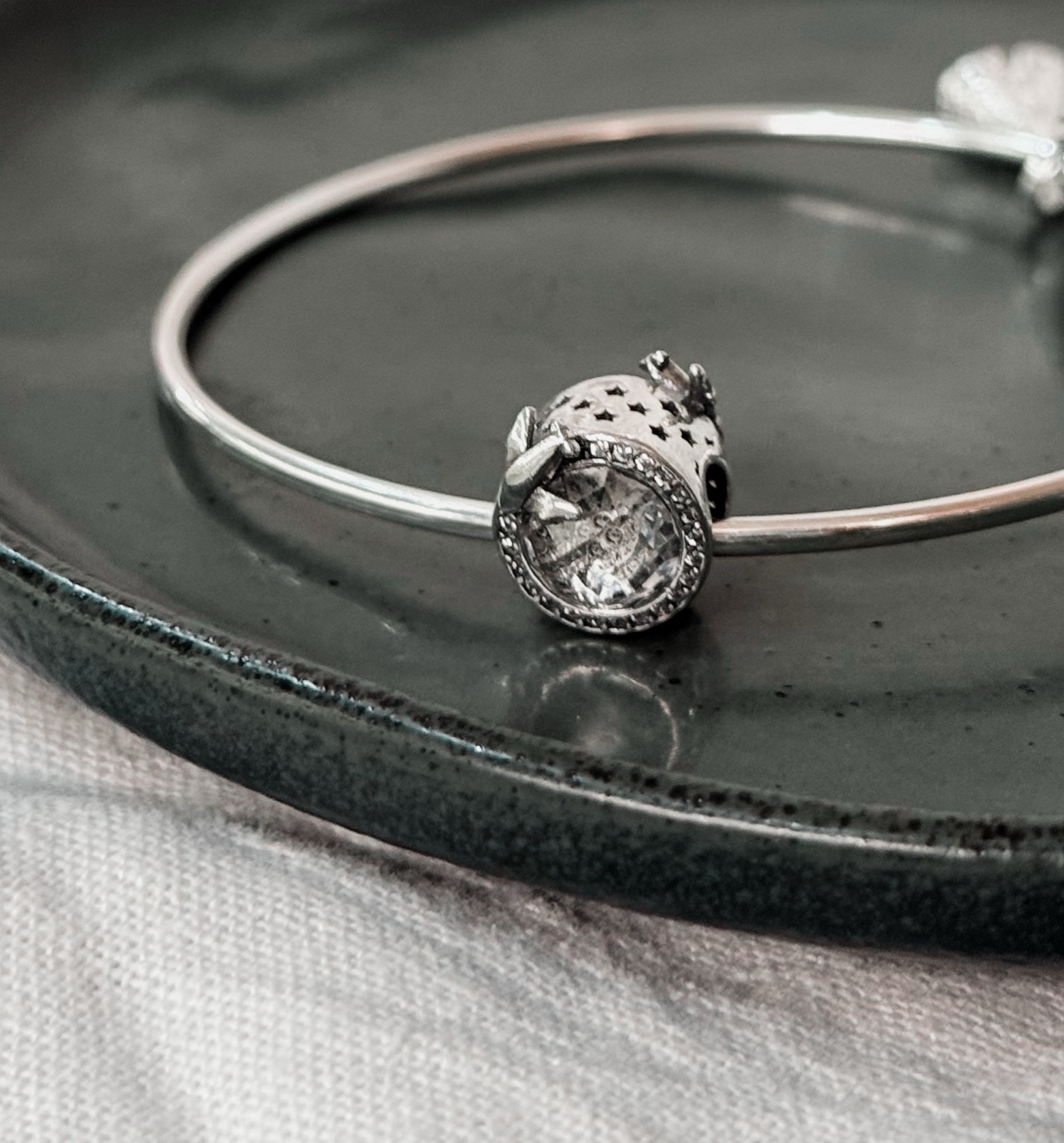 Podendo ser usado tanto como pingente de colar, quanto pulseiras Pandora.