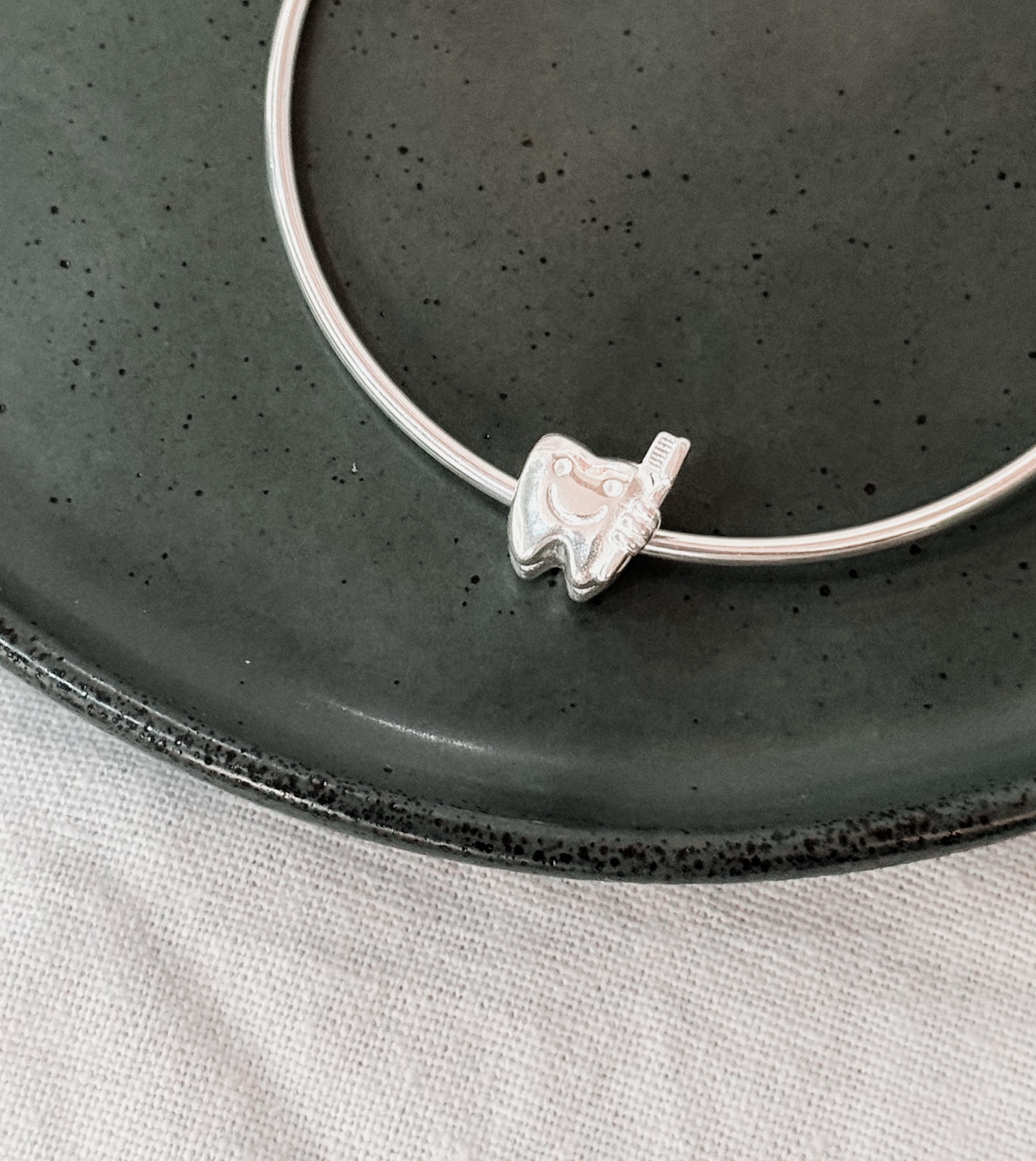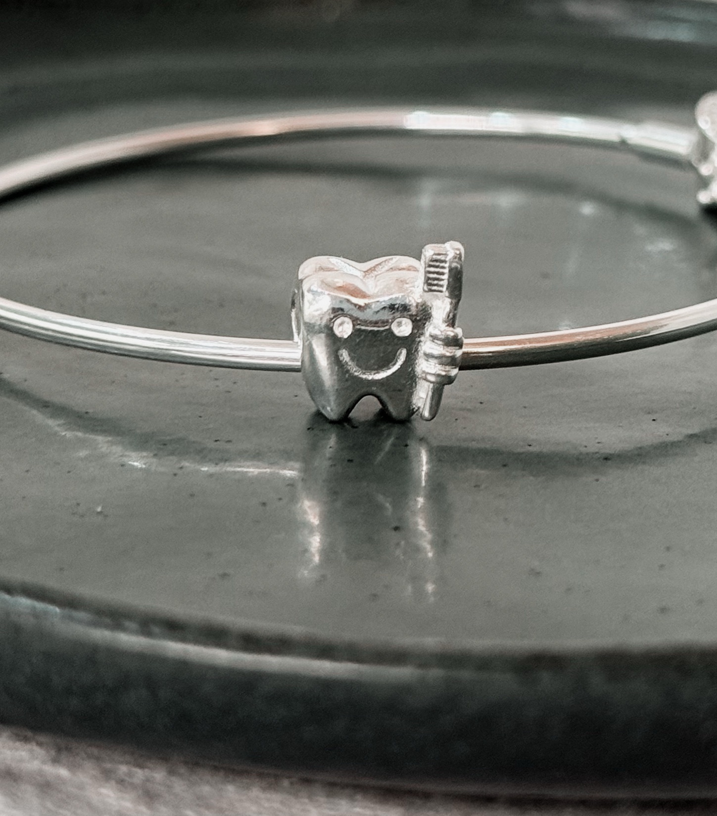 Berloque em formato de dente, medindo 0,6cm.