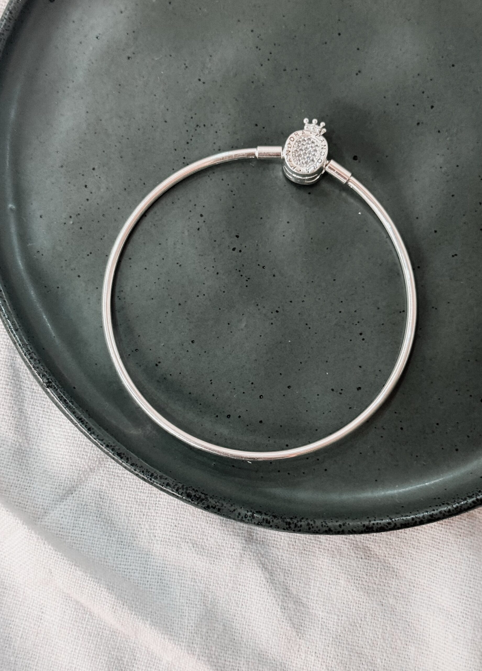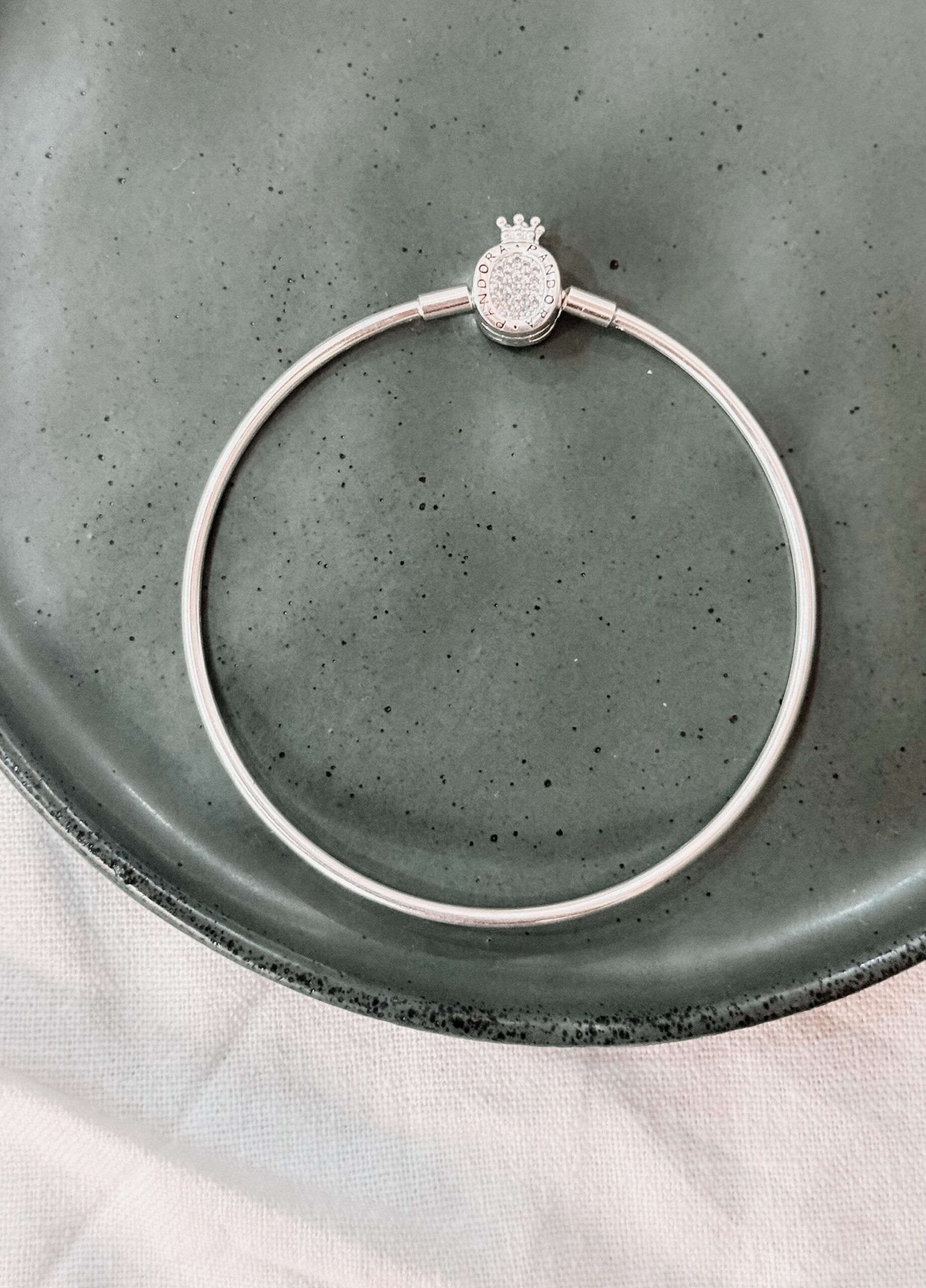 Bracelete em prata com fecho Pand em formato de Coroa .