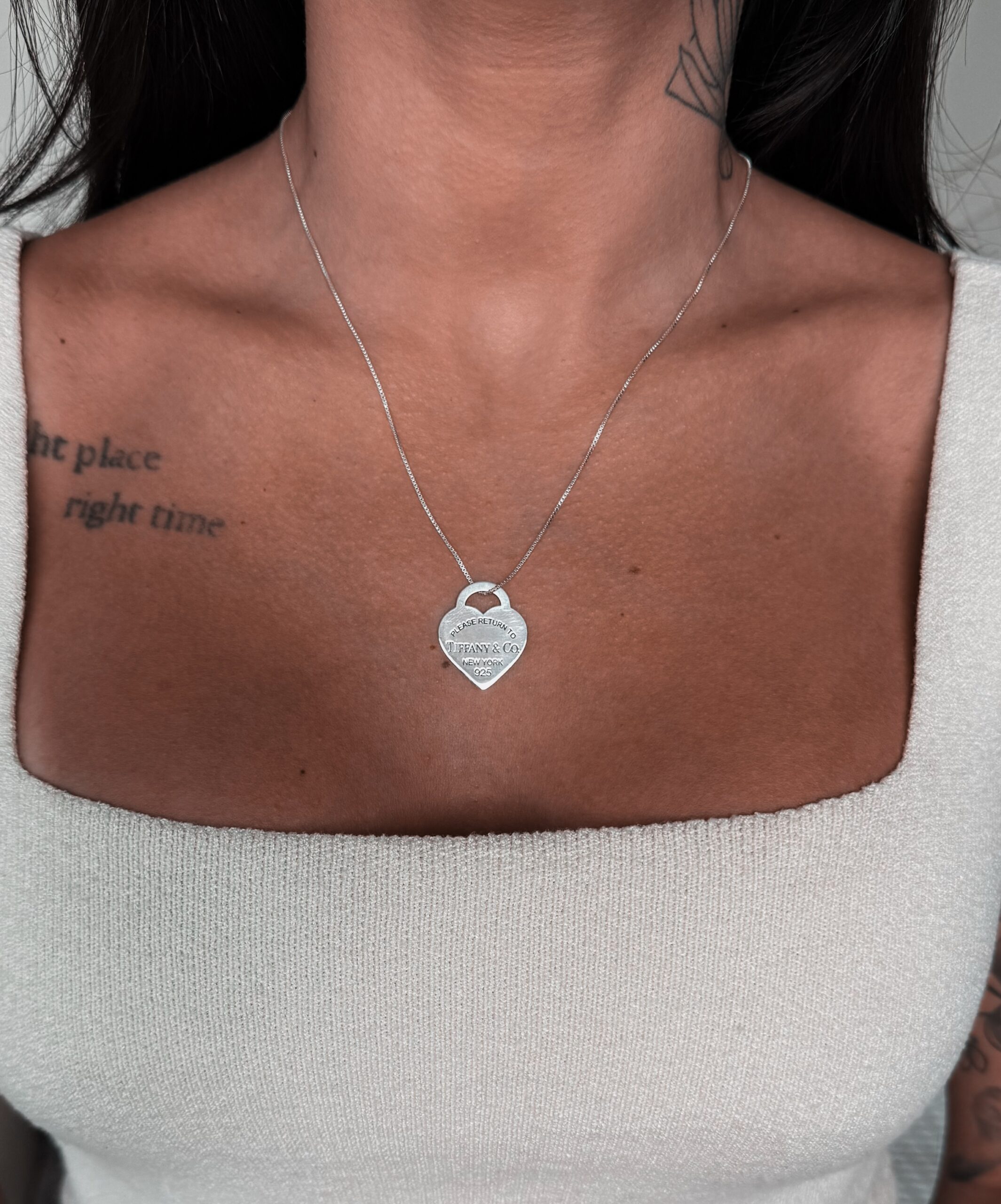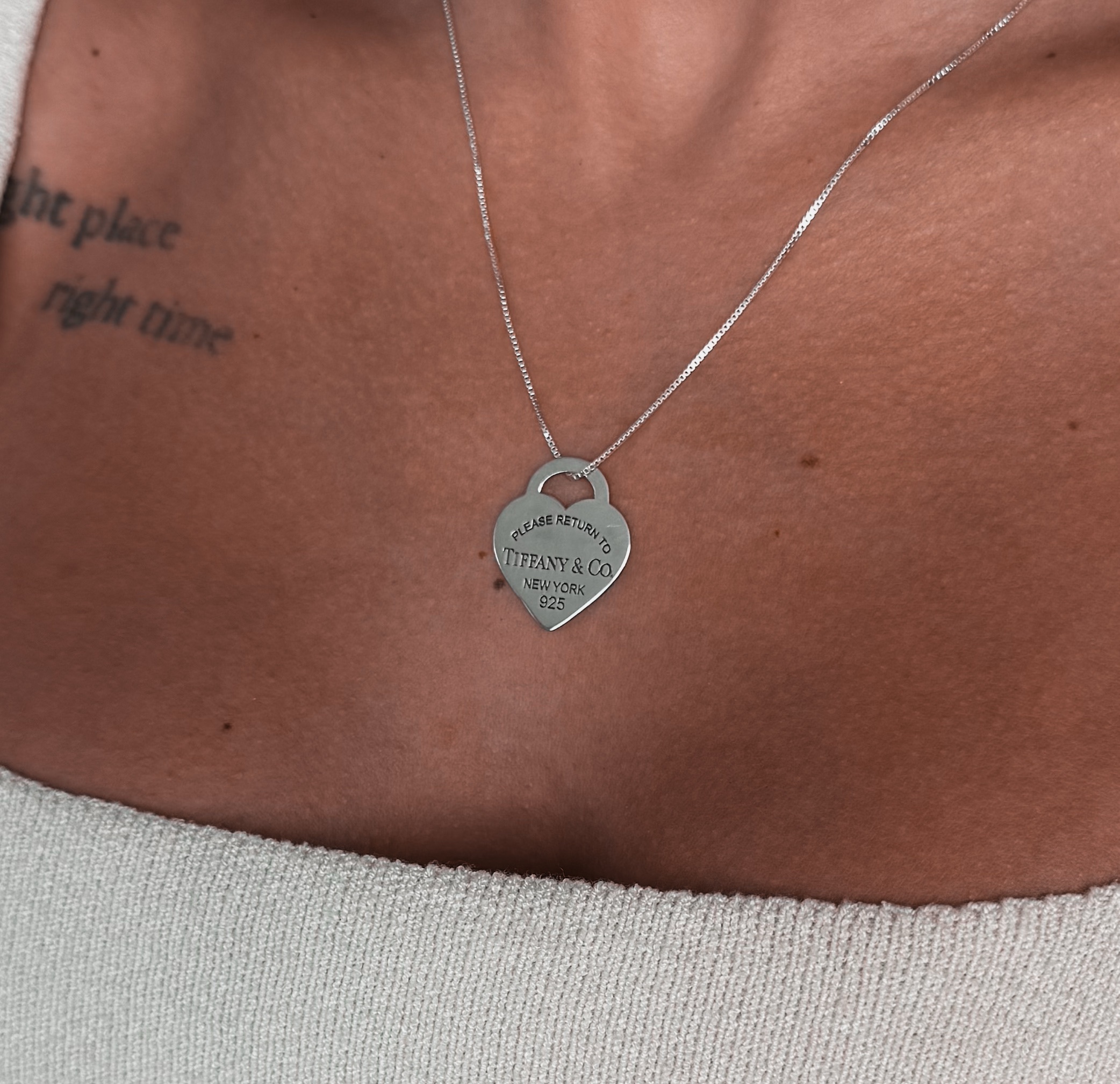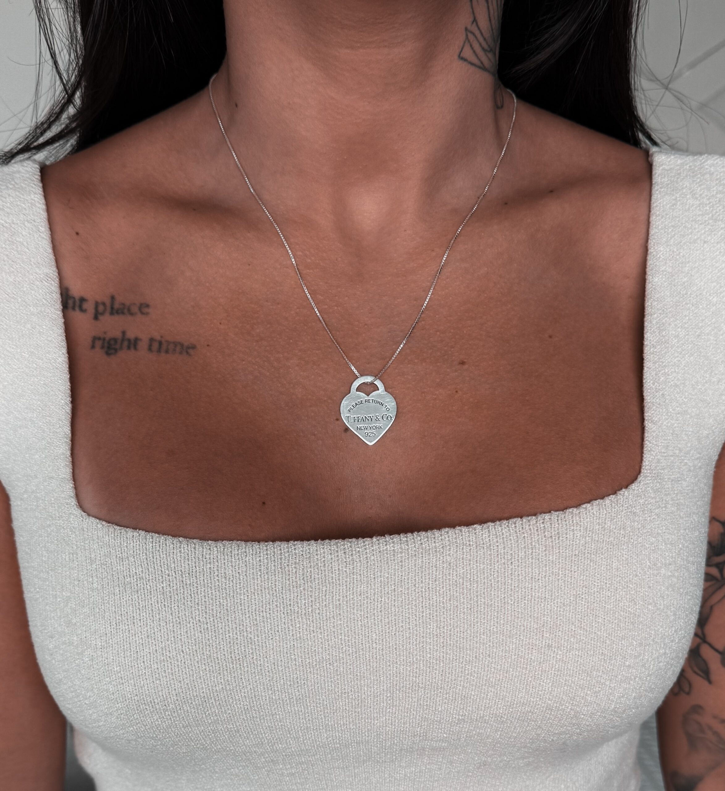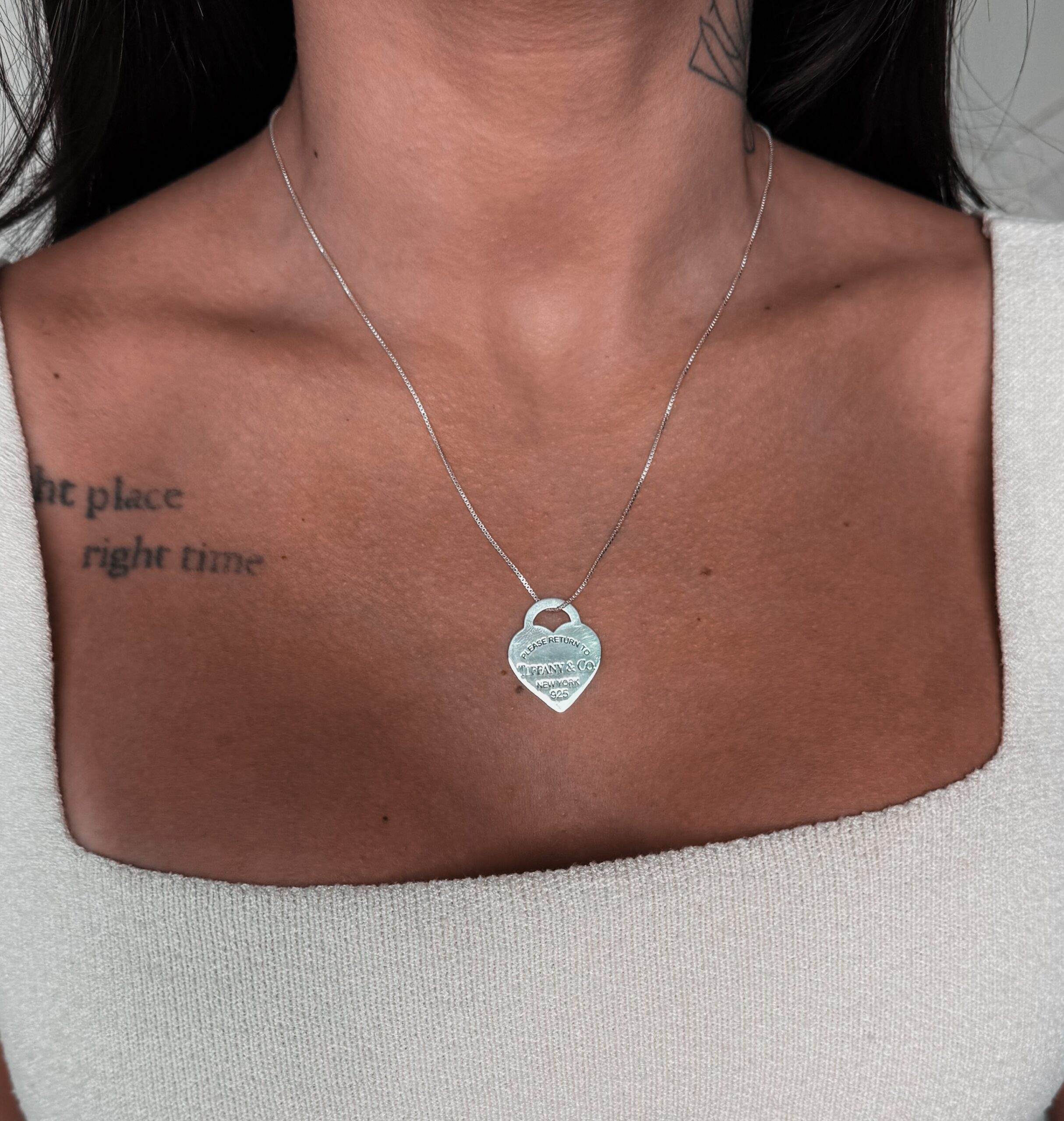 Colar em formato de corrente com pingente insp tiffan em formato de coração