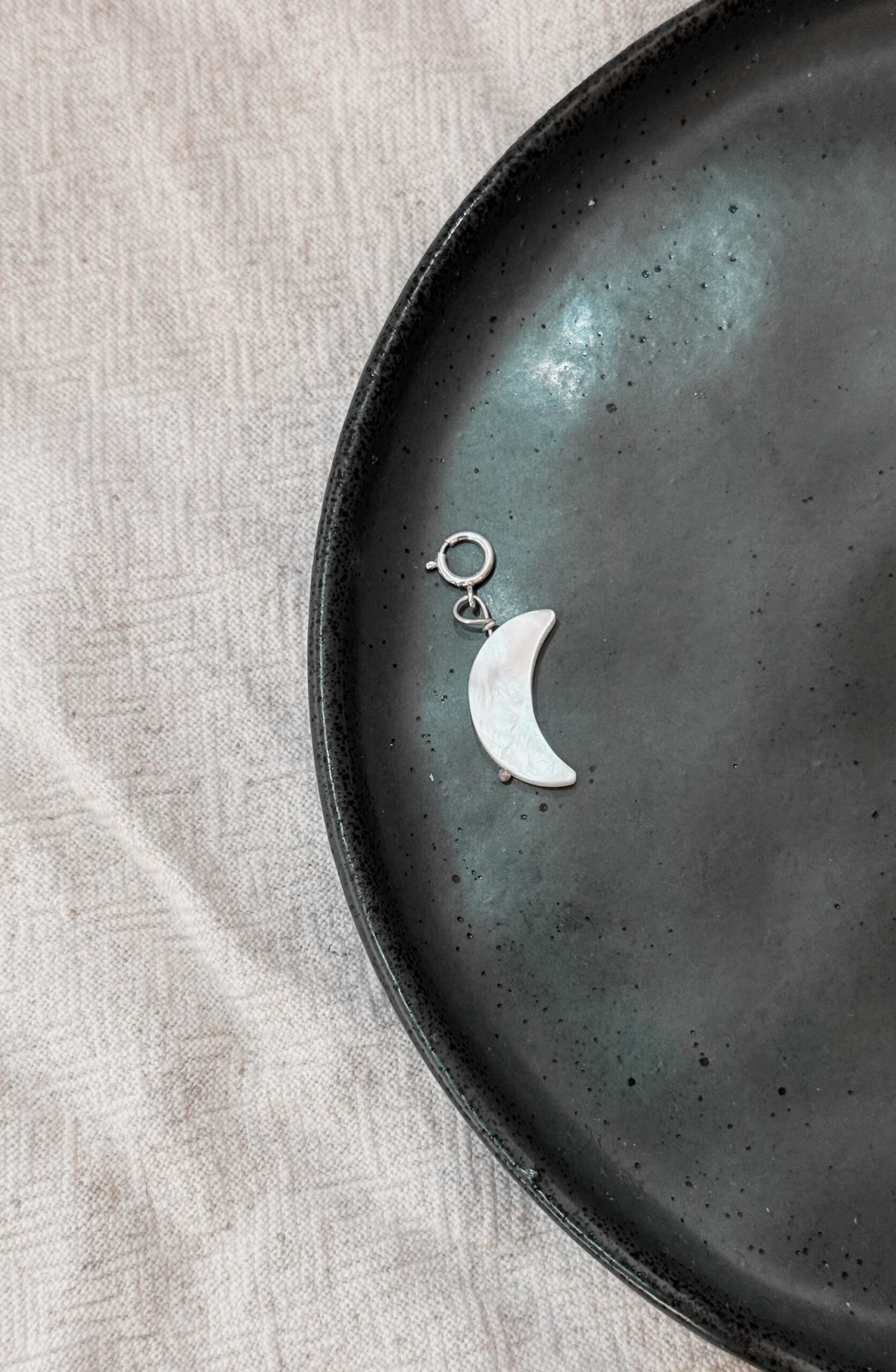 Pingente de formato de Lua em Madre Pérola com fecho para colocar em colar, argolas e nosso anel Pin