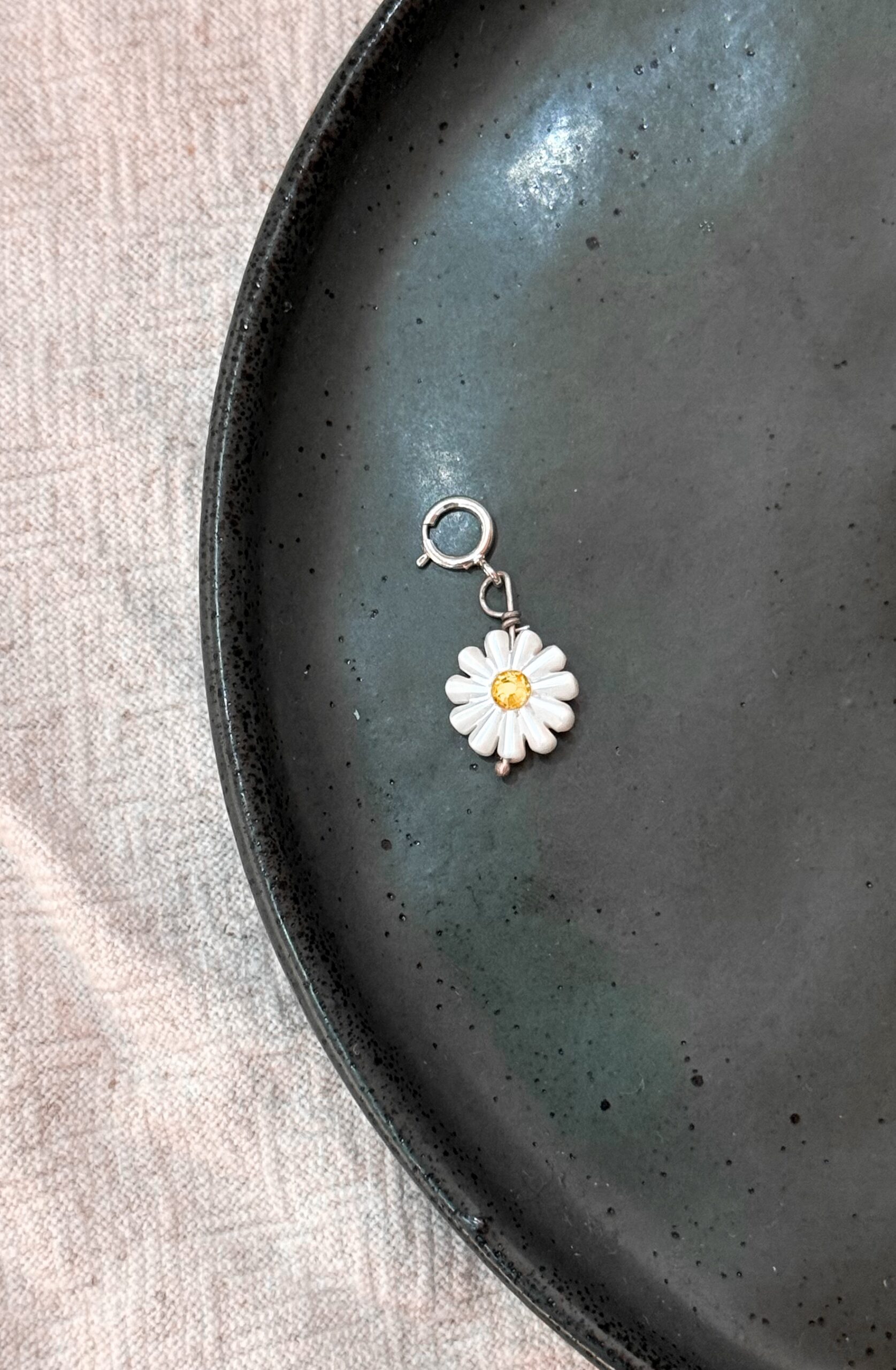 Pingente de formato de Margarida em Madre Pérola com fecho para colocar em colar, argolas e nosso anel Pin