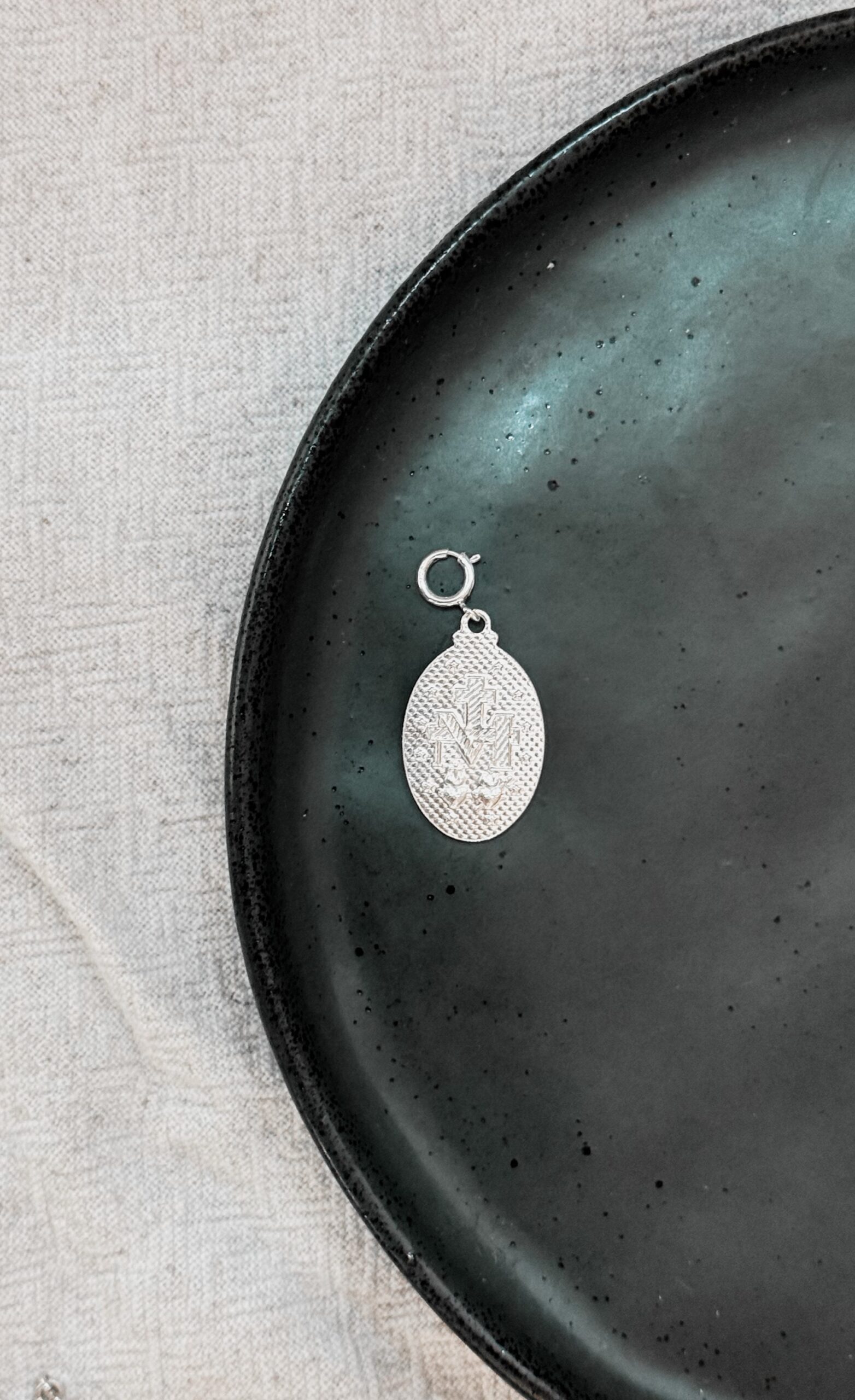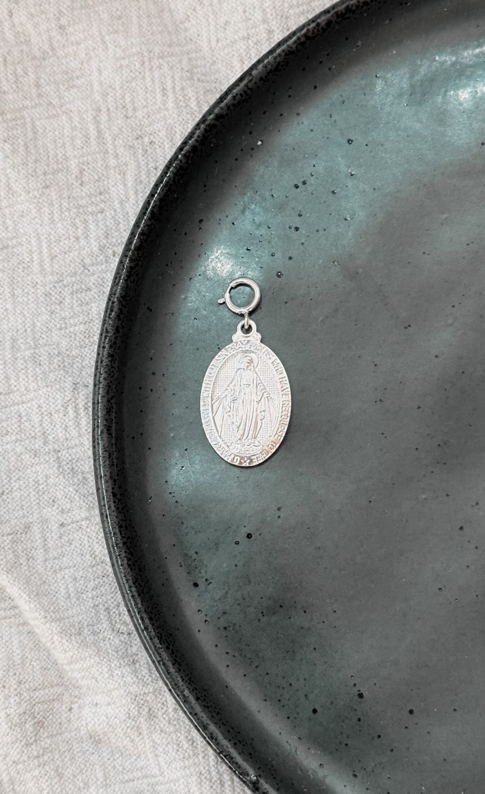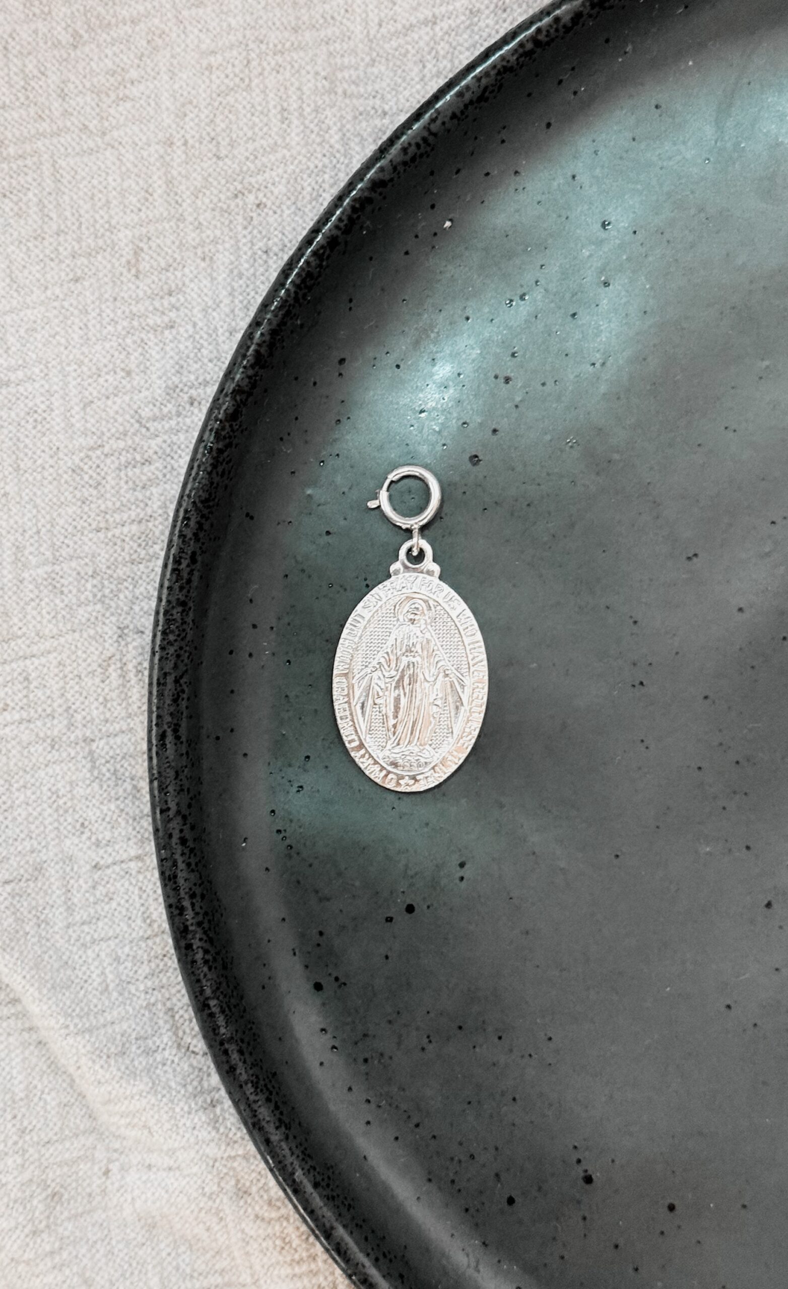 Pingente com imagem da Nossa Senhora da Graça com fecho para colocar em colar, argolas e nosso anel Pin
