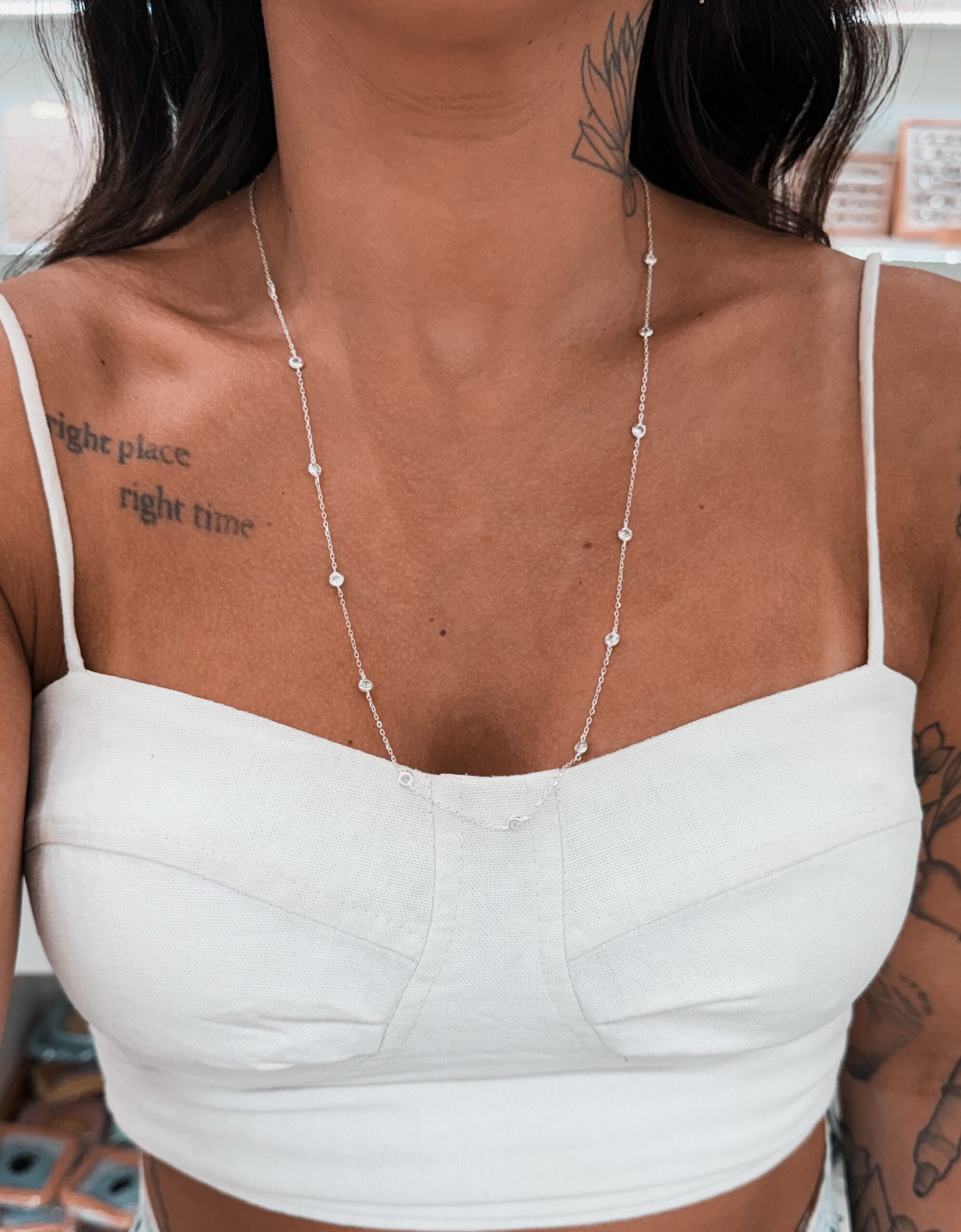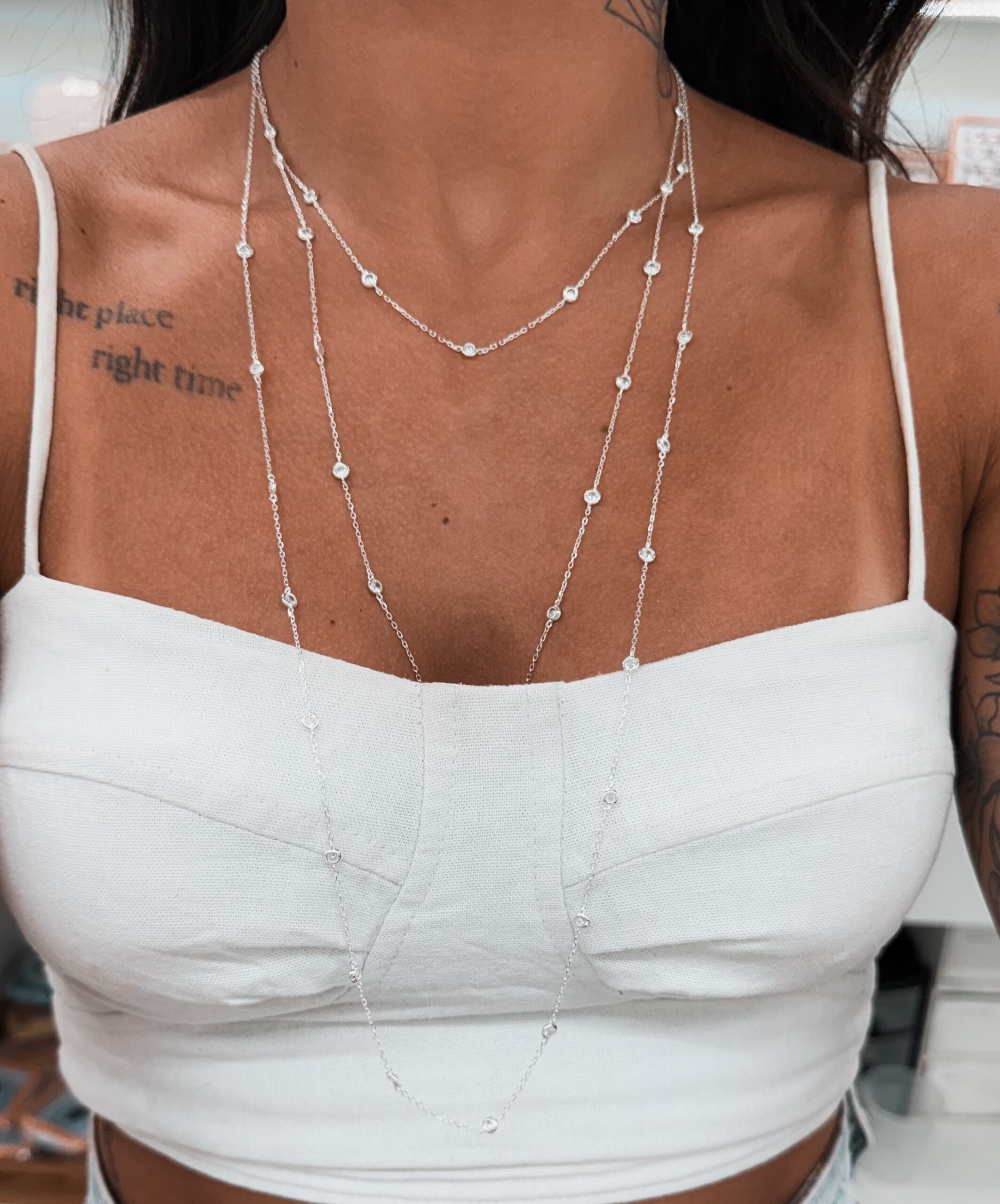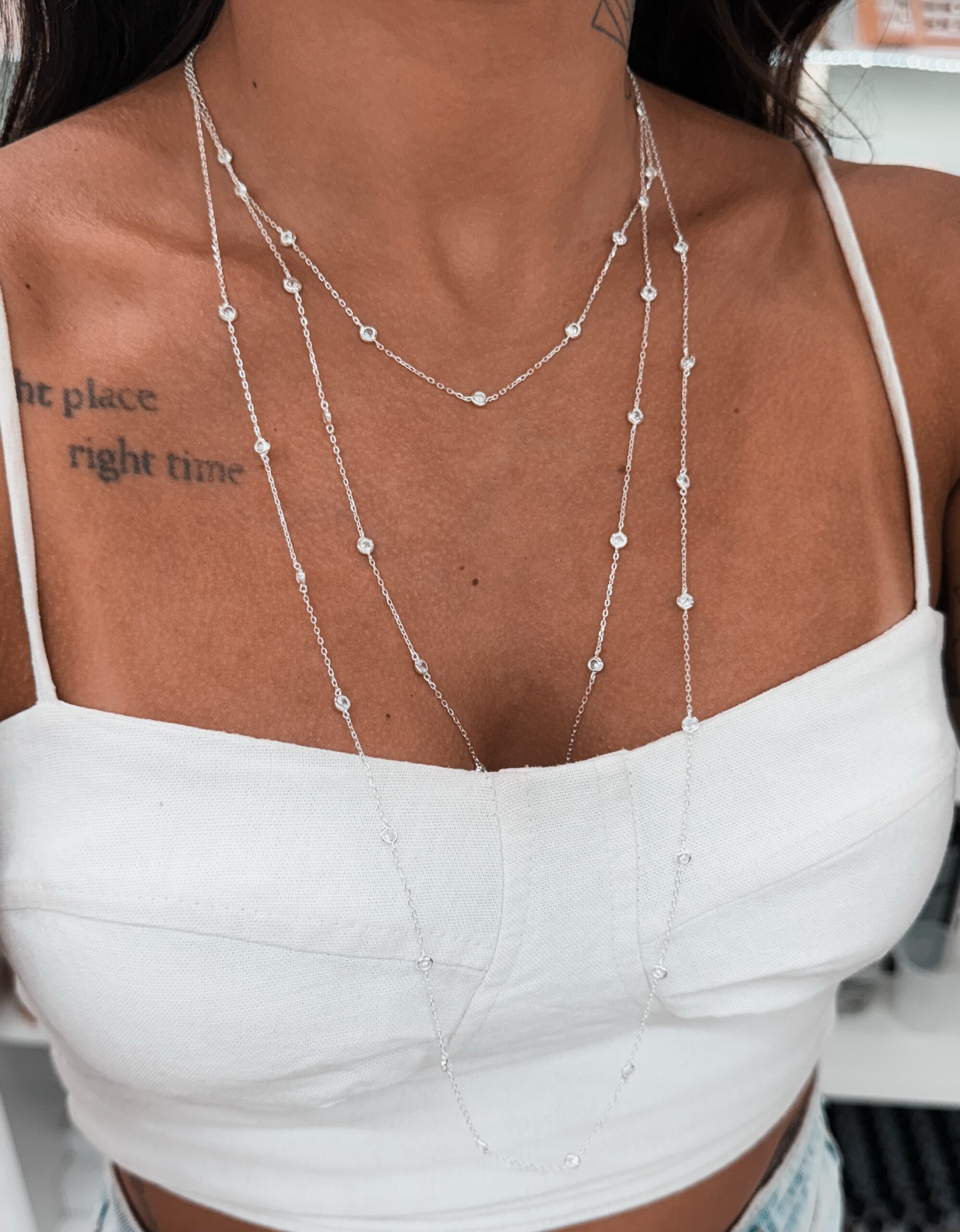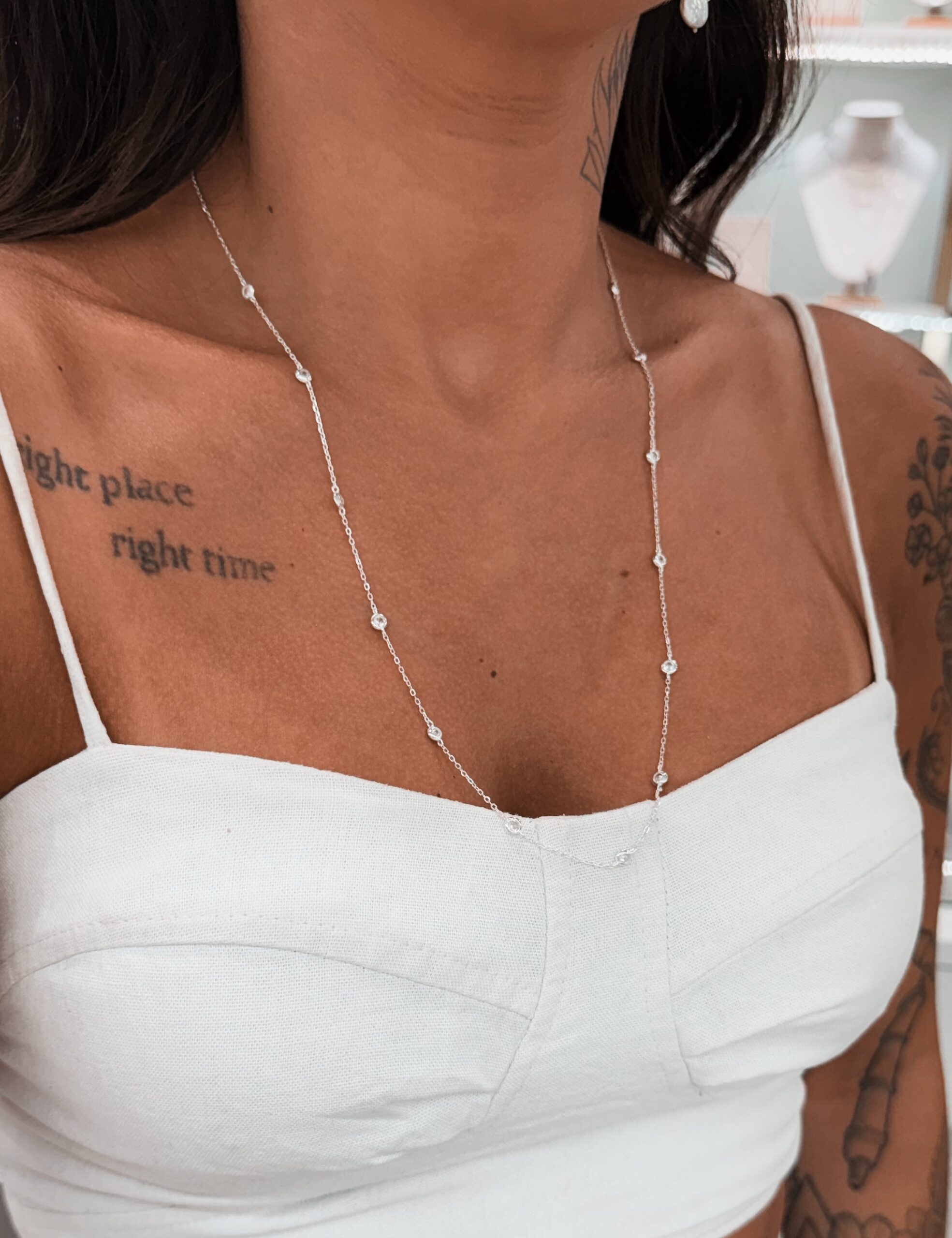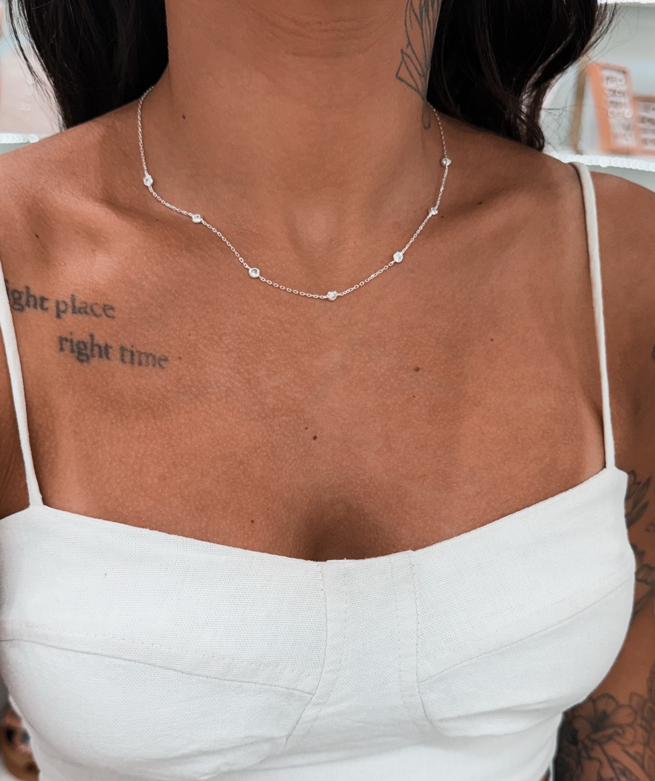 Colar em modelo corrente com pontos de luz cravejadas na corrente.