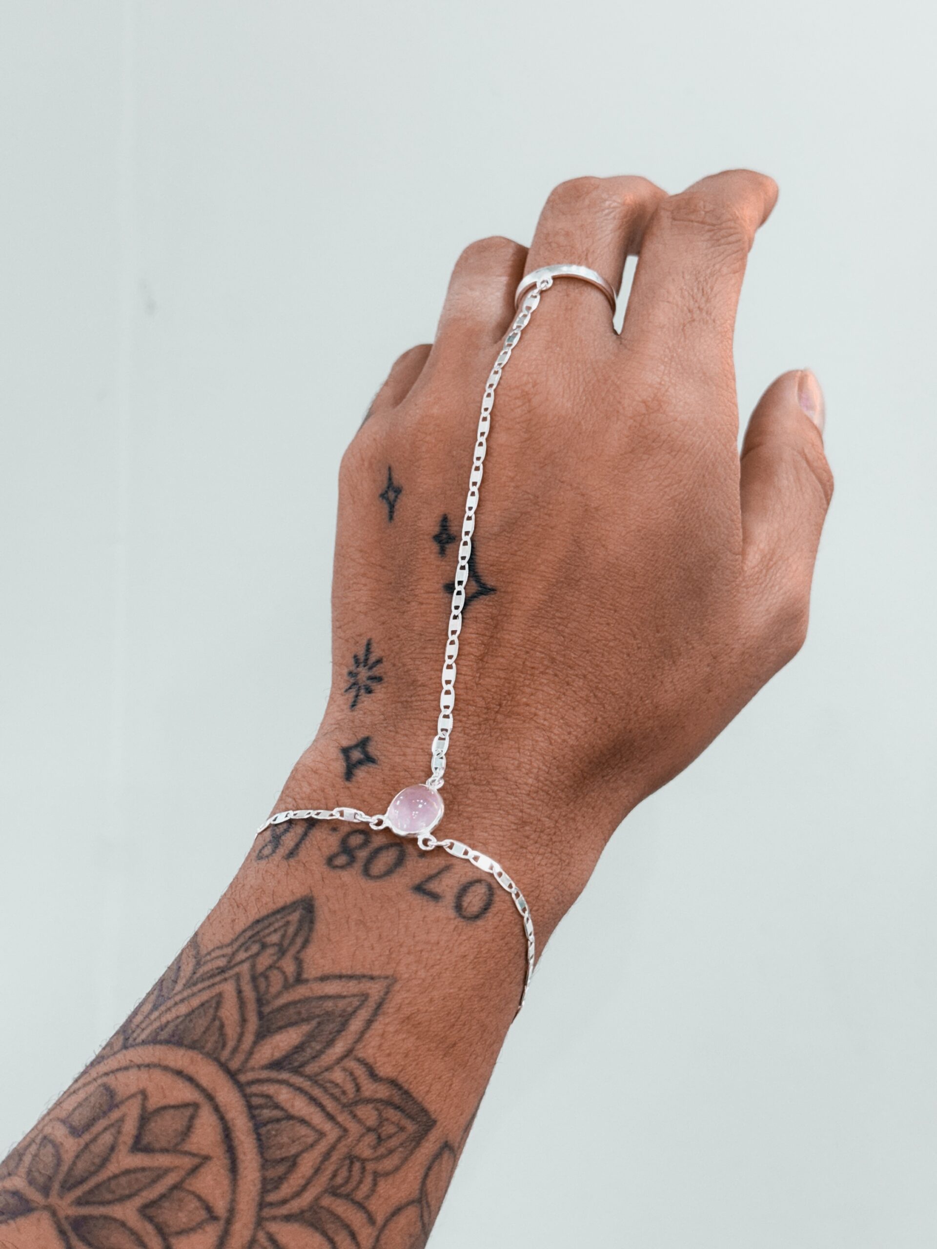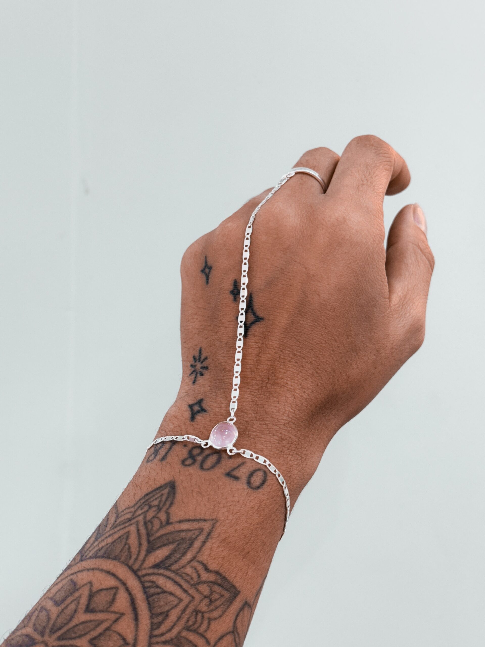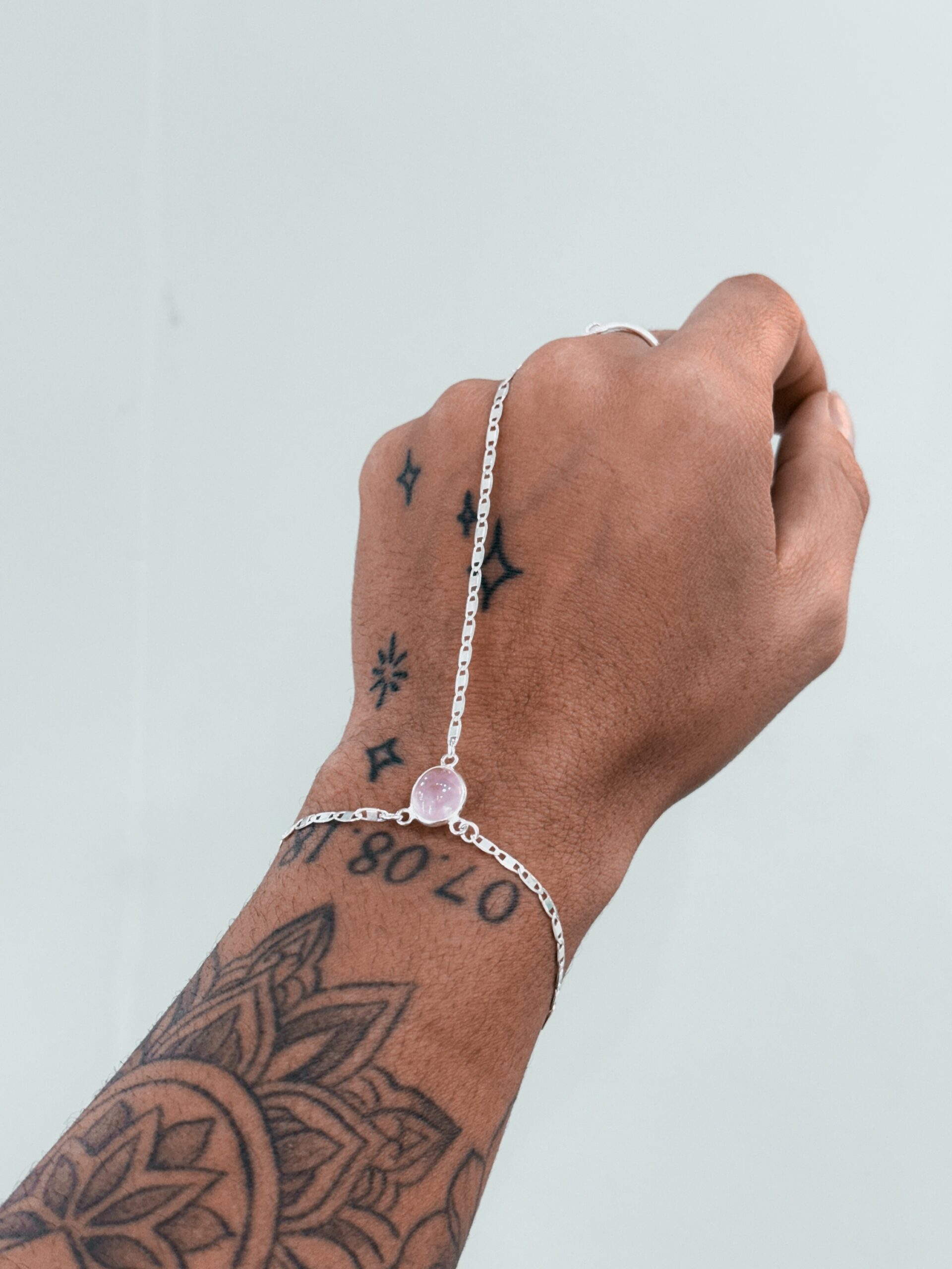 Pulseira Hand Chain Quartzo Rosa