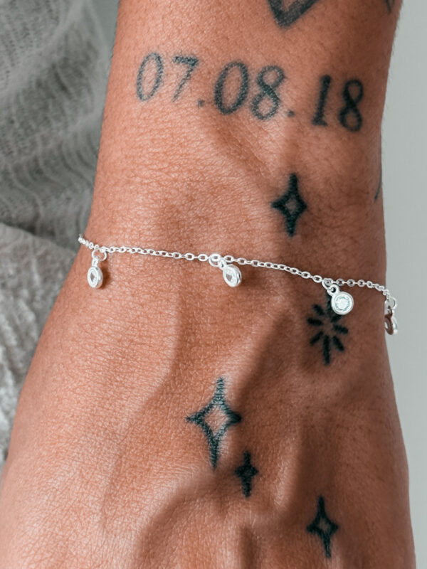 Pulseira com pontos de luz todo cravejados pendurados.